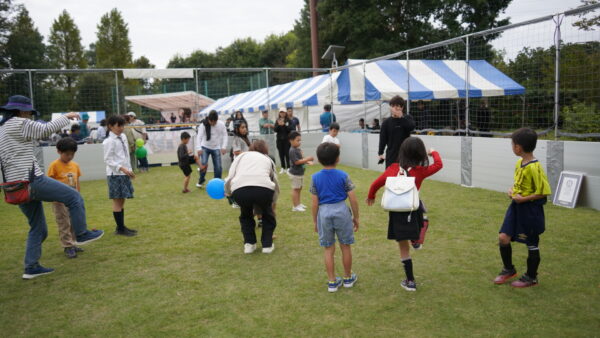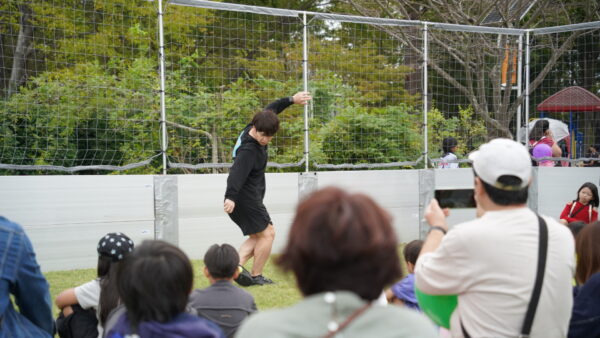 当日は、ケージボール体験コーナーにてフットバッグのパフォーマンスを披露しました。